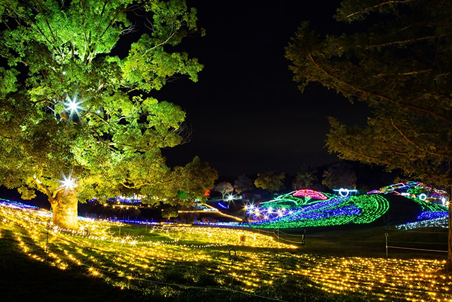 ”Winter Fantasy”, now in its 19th year, is being held at the state-run Sanuki Manno Park until January 13, 2025. This year's theme is “Starry Trail - Starry Sky Walk”. The park is fantastically decorated with 650,000 LED light bulbs and objects inspired by the starry sky and celestial bodies. There will be a grand illumination covering an area of 32,000 m2, a champagne tower made from 4,900 glasses, a tunnel of light, and many other attractions. There are also restaurants and food stalls in the park, where visitors can relax and enjoy while warming themselves with “Tonjiru” (pork miso soup), etc. In addition, a digital map will help you find your current location, making it convenient to walk around the park. Enjoy the vast illumination shining brightly in the pitch-dark night sky over the mountains.