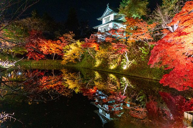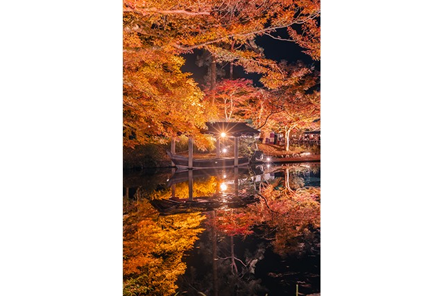 Oomoto features numerous precious structures, including Chōseiden Hall, often called “the greatest wooden architecture of the 20th century.” In autumn, the grounds are dyed crimson with autumn leaves, weaving a breathtaking scene. When the foliage reaches its peak, the “Ayabe Momiji (Japanese maple) Festival” is held. For three days, the area is illuminated, creating a mystical scene where light and autumn leaves reflect on the water's surface. On the 29th and 30th, enjoy the festive atmosphere with outdoor tea ceremonies, koto concerts, and food stalls. Why not spend a moment this autumn admiring the vibrant autumn leaves that vividly color the grounds?