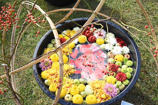 弘前城と菊と紅葉の競演