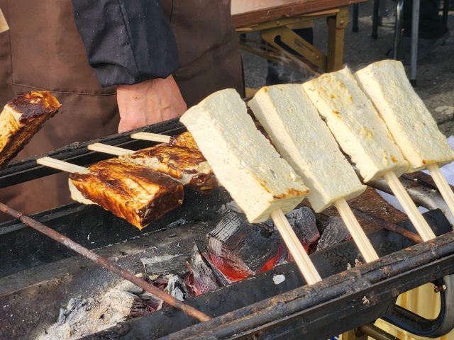 全長約800m、300店ほどが軒を連ね、数多くのメディアでも紹介されてきた国内最大級の巨大朝市「館鼻岸壁朝市」。毎週日曜の夜明けと共に始まり、地元の海産物や農産物はもちろん、お菓子やおもちゃ、衣類、家電まで揃い、早朝から活気に包まれます。また、地元グルメがその場で食べられるのも人気。手羽先に衣を付けて揚げた“しおてば”や、ふじりんごとカスタードを包んで揚げた“春巻きりんご”、そして各種鍋料理など、名物グルメをおなかいっぱい堪能できます。そんな「館鼻岸壁朝市」は例年なら1月~3月はお休みですが、今年は「冬の館鼻岸壁朝市」として開催が決定。屋内に会場を移し、約50店舗にキッチンカーも加えて、変わらない熱気が期待できそうです。